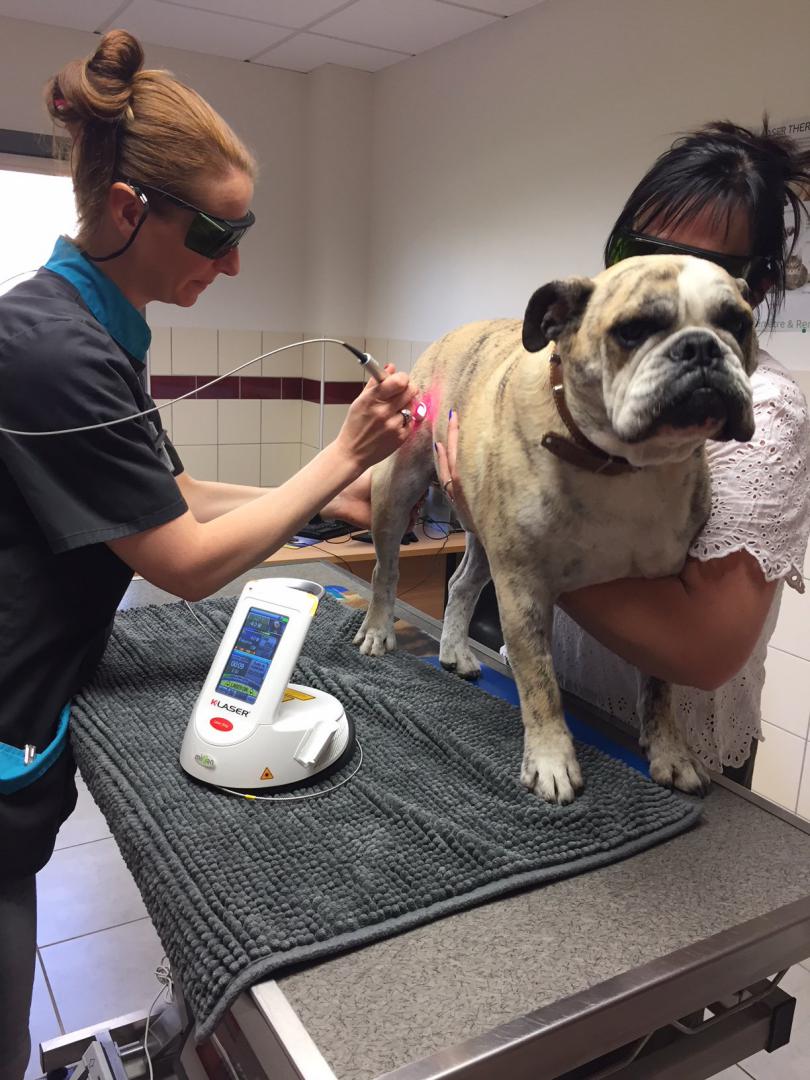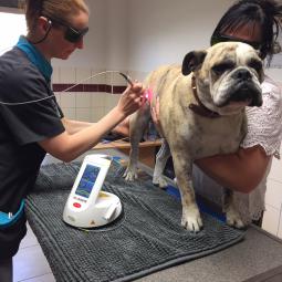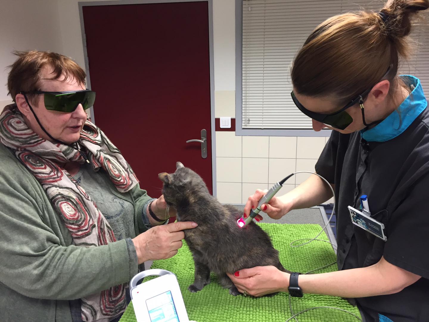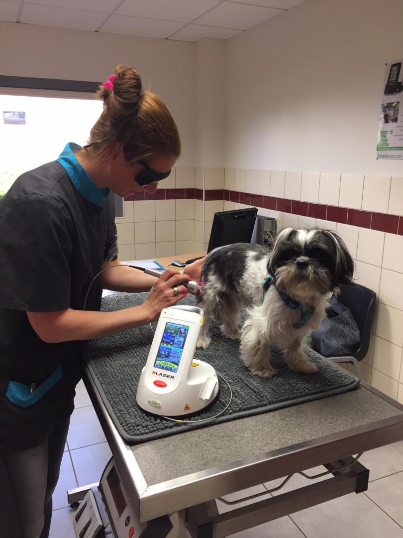 Complètement indolore pour nos compagnons, celle-ci a pour but d'améliorer la prise en charge de la douleur liée à une chirurgie, à une pathologie chronique (arthrose, inflammation chronique des gencives, tendinite,...), la gestion de la cicatrisation des plaies (post-chirurgicales, œdème, brûlure, ulcère,...), et donc de pouvoir diminuer l'administration de médicaments.